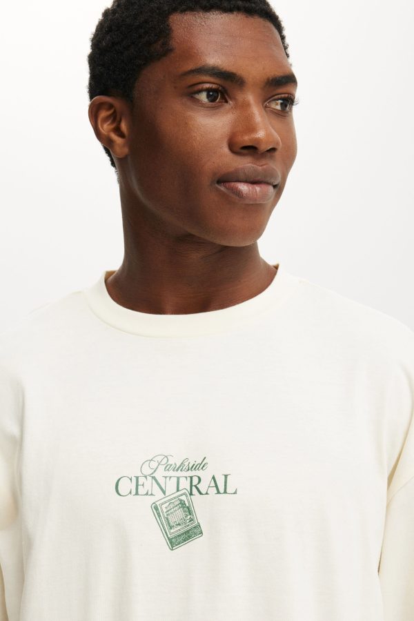 - Slouchy shoulder and extended sleeve length