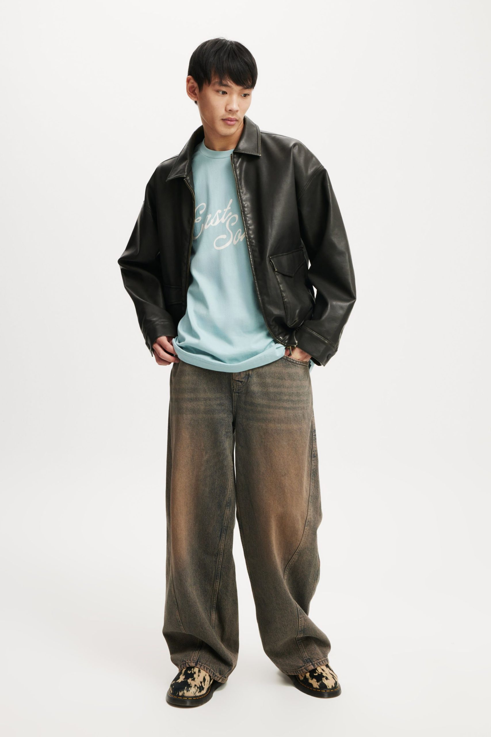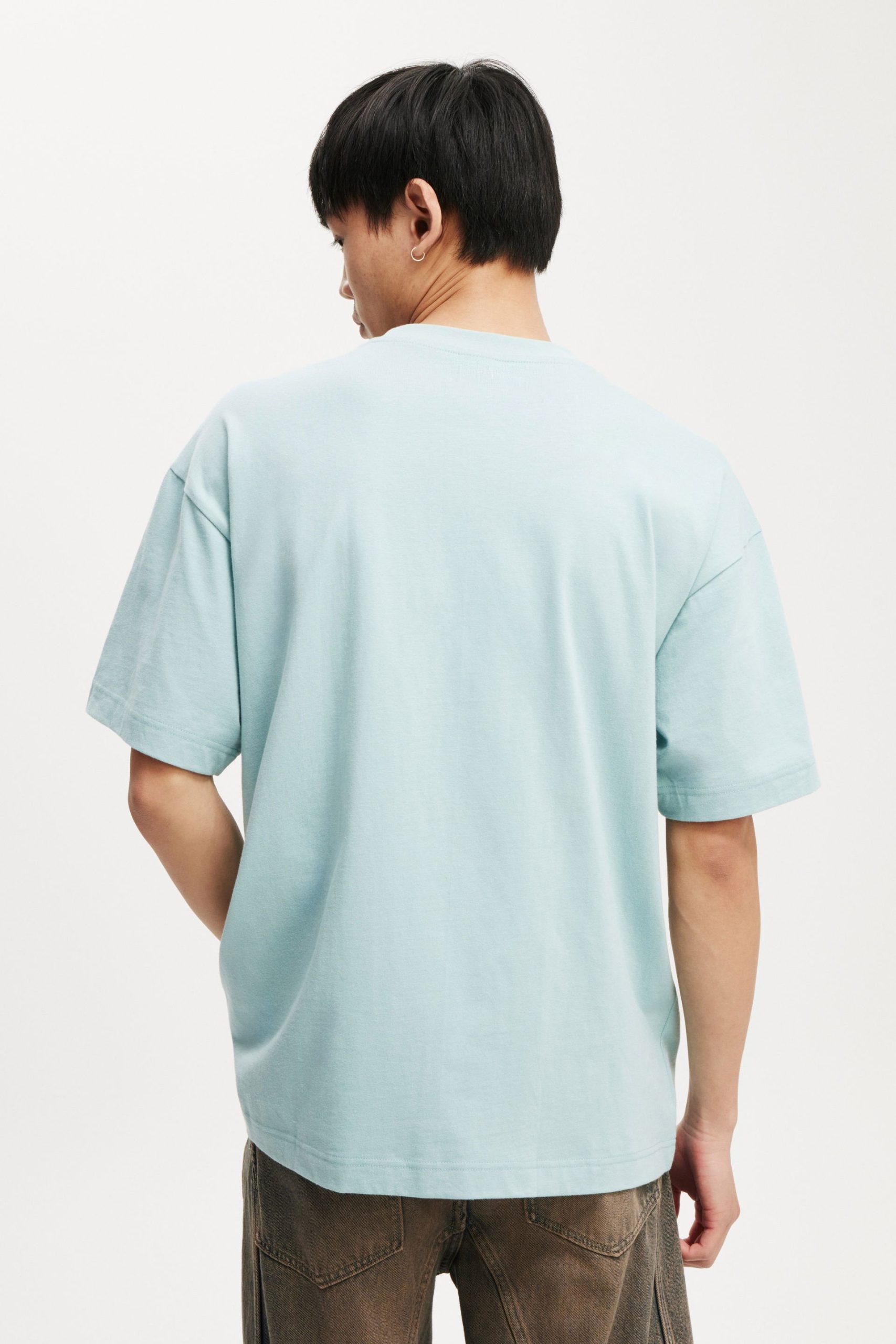 - Slouchy shoulder and extended sleeve length